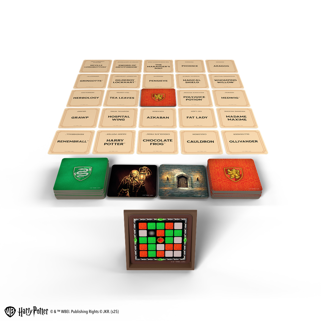 Detta är ett fristående brädspel i den populära Codenames-serien, nu med ett tydligt Harry Potter tema från Wizarding World. Spelet behåller den klassiska spelmekaniken med smarta ledtrådar och ordassociationer, men tillför helt nya strategiska element genom Hogwarts fyra elevhem: Gryffindor, Ravenclaw, Hufflepuff och Slytherin.